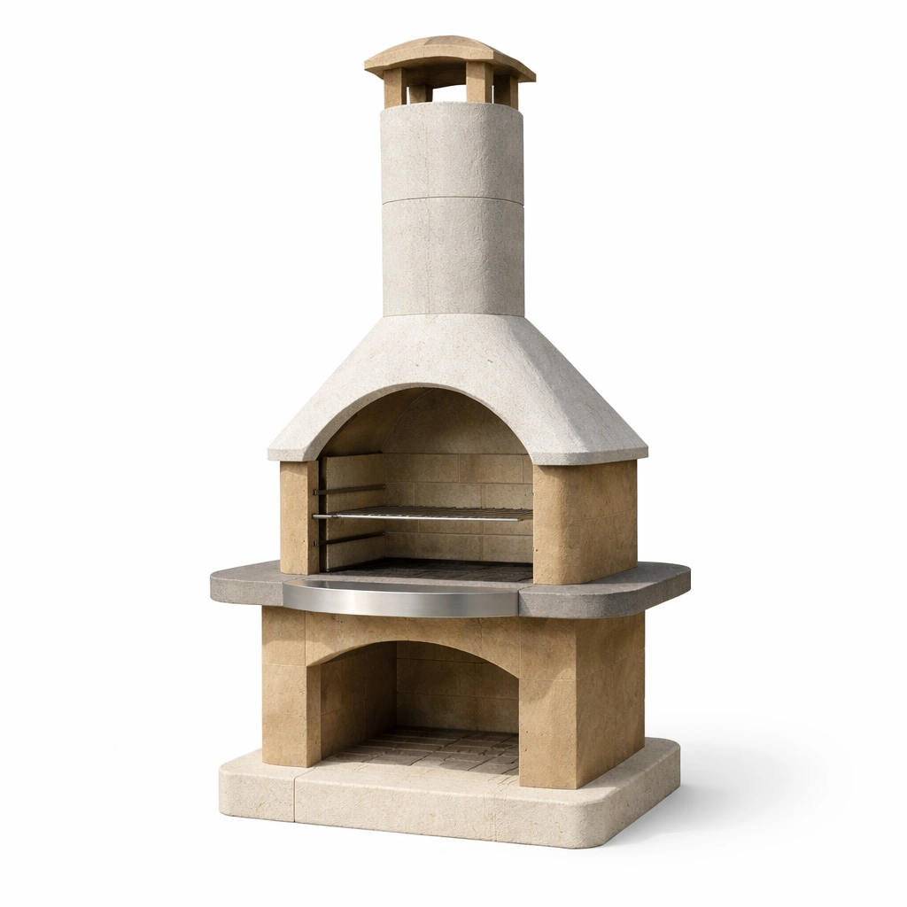 Barbecue in pietra e cemento con griglia in acciaio inossidabile