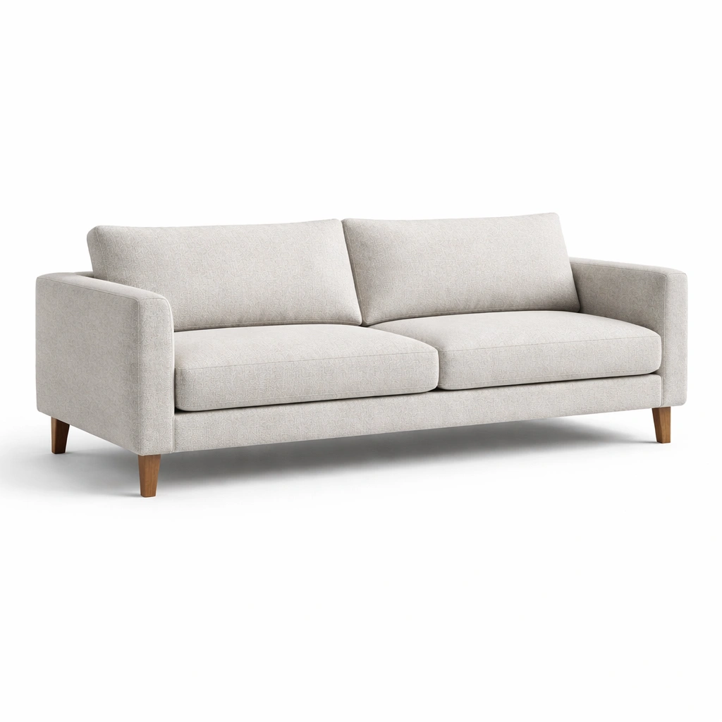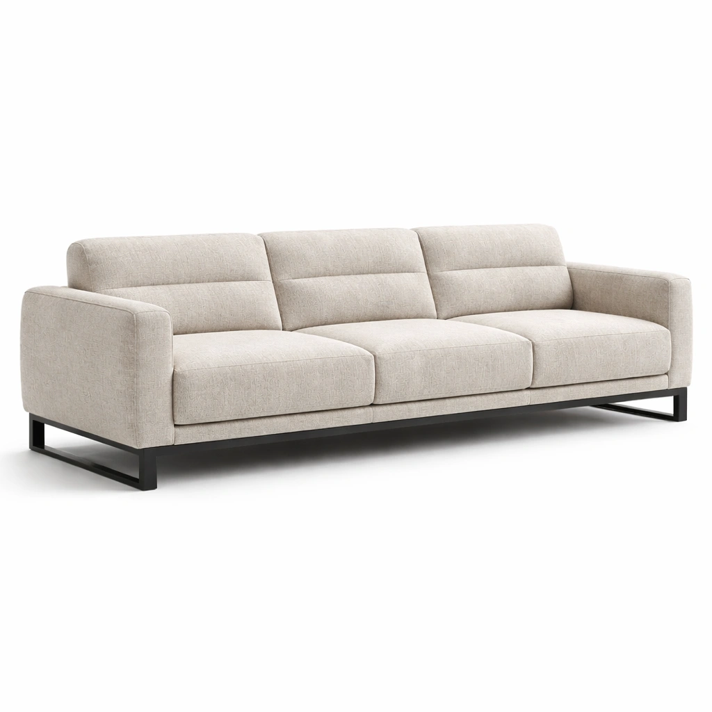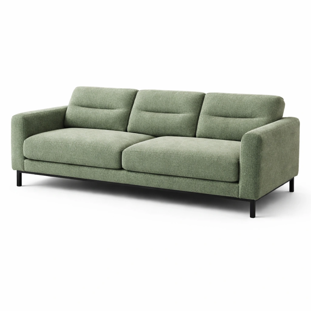 Divano in tessuto verde poliestere con struttura in legno e metallo